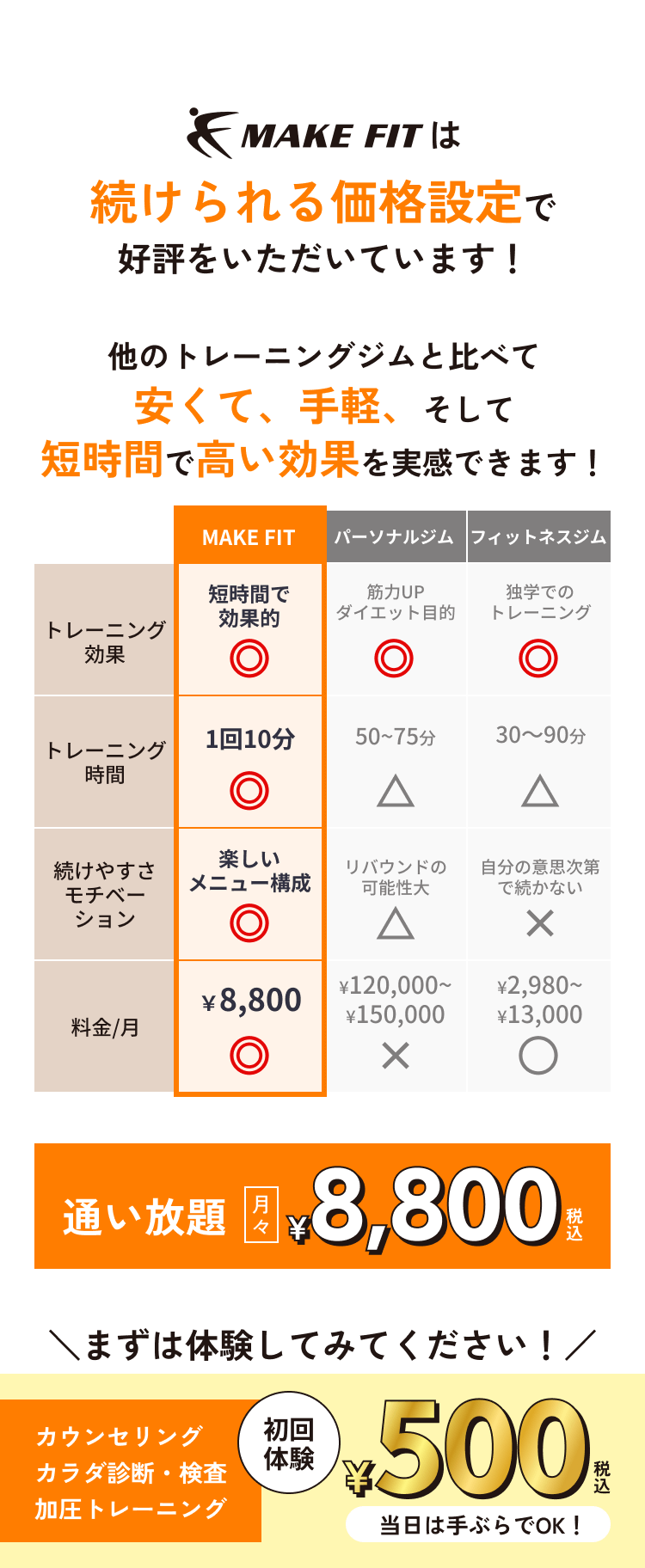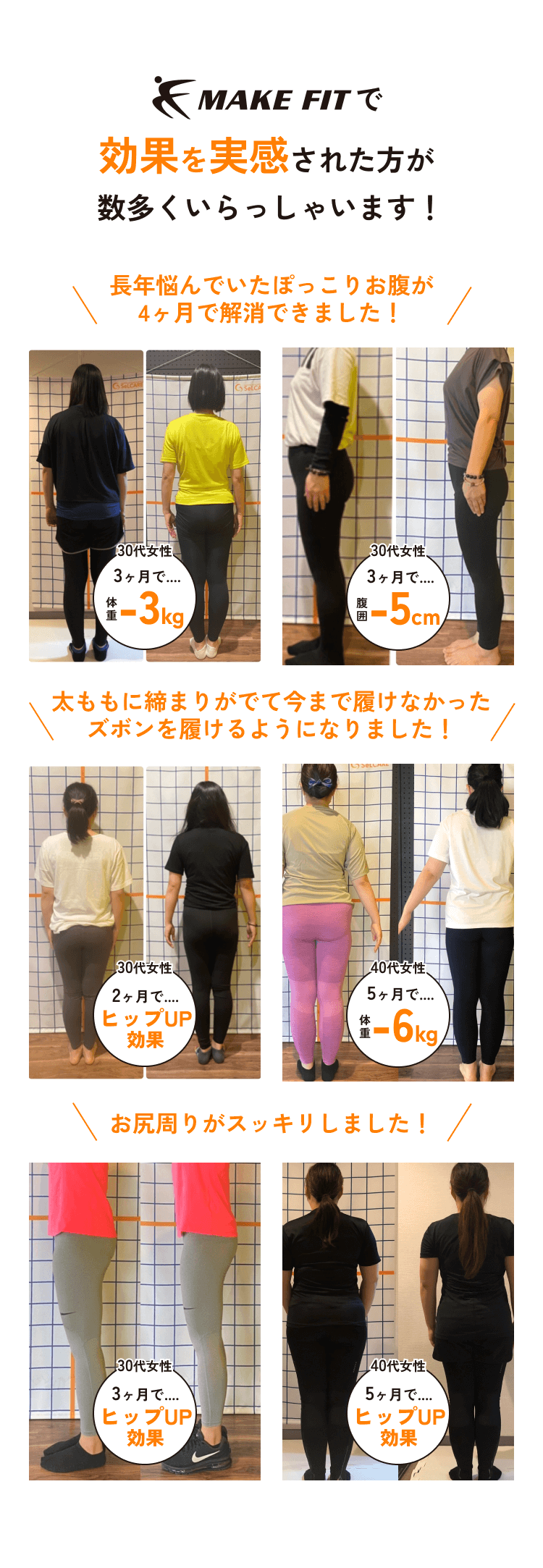 治療だけでは治しきれない症状もMAKE FITと組み合わせていけばより早期かつ再発しにくい身体を作り上げる事ができると思います