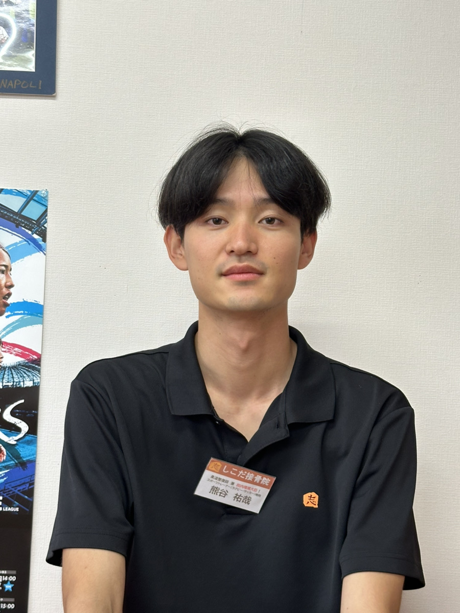 柔道整復師の熊谷です。今の自分の身体を変えたい、そのようなお悩みをご一緒に解決していきましょう!